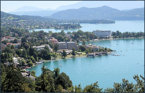 Wörthersee, Velden und den dahinter liegenden Karawanken. Die Natur lag einwenig im blauen Dunst, womit wir keine klare Aussicht hatten, wie in den Tagen zuvor.